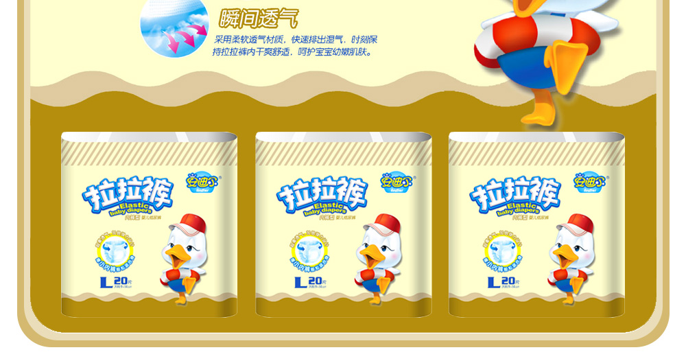 | "馨怡兒"系列紙尿片紙尿褲是由湖南省安迪爾衛(wèi)生用品有限公司自主研發(fā)生產(chǎn)的首款面對市場的中端紙尿片,產(chǎn)品包裝集中于中型包裝。物美價廉,自推出以來,贏得很多新老客戶的厚愛。 "馨怡兒"紙尿褲/片五大產(chǎn)品優(yōu)勢: 1、超強立體吸收表層 選用棉柔立體親膚表層,能使尿液快速滲透,更能均勻?qū)Я,更薄更干爽?br> 2、瞬吸雙核心設計 上層瞬吸吸核心迅速吸附尿液,并導向下層的鎖水核心,鎖水更快、更牢、整夜干爽。 3、輕柔透氣底層 柔軟舒適的進口輕柔透氣底層,能呼吸般排出悶熱濕氣,使小屁屁干爽舒適。 4、復合多層吸收芯體 高密度吸收芯體能將尿液層層吸收并牢牢鎖住,表面瞬間干爽,呵護寶寶小屁屁。 5、透氣防側漏護圍 雙層設計的防側漏導流槽柔軟而富有彈性,在有效防止側漏的前提下讓寶寶腿部活動自由。 |