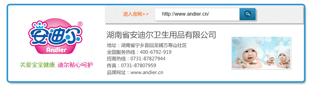 | 湖南省安迪爾衛(wèi)生用品有限公司隸屬于香港迪爾紙業(yè)國際發(fā)展有限公司,是一家著名的婦嬰衛(wèi)生用品生產(chǎn)和經(jīng)銷企業(yè)。公司地處“全國百強縣”劉少奇主席的故鄉(xiāng)—寧鄉(xiāng),距湖南省省會長沙25公里,地理位置優(yōu)越,交通便利。 湖南省安迪爾衛(wèi)生用品有限公司源于湖南省寧鄉(xiāng)縣長樂衛(wèi)生用品廠,成立于1995年,是一家集研發(fā)、生產(chǎn)、銷售為一體的現(xiàn)代化新型企業(yè)。針對于人口眾多的中國市場,2012年安迪爾斥資在湖南寧鄉(xiāng)設立中國總部,引進香港最新育兒理念,新增全自動高速嬰兒紙尿褲生產(chǎn)線一條,紙尿片生產(chǎn)線一條,年生產(chǎn)能力過億元。公司現(xiàn)有各類技術人員36名,高級營銷人員29名。 公司秉承“市場主導,質(zhì)量取勝,誠信經(jīng)營,客戶滿意”的核心理念,注重銷售網(wǎng)絡建設,F(xiàn)已開發(fā)湖南、湖北、江西、貴州、四川、重慶等19個省近400家代理經(jīng)銷商,贏得了廣大經(jīng)銷商和消費者的信賴與支持。 篤行不倦,勇于承擔。公司經(jīng)過發(fā)展,憑借著良好的質(zhì)量口碑,“安迪爾”已成為中國千萬新生寶寶父母的喜愛品牌。公司將繼續(xù)秉承長樂企業(yè)的優(yōu)良傳統(tǒng),專注于嬰童事業(yè)的發(fā)展,專注于品質(zhì)和社會責任,努力為祖國的未來提供健康安全的品質(zhì)保證!百|(zhì)量取勝,合作共贏”,走品牌發(fā)展之路,走企業(yè)創(chuàng)新之路。安迪爾愿與廣大客戶結成長期穩(wěn)定的戰(zhàn)略合作伙伴,為攜手共贏而努力奮斗! |