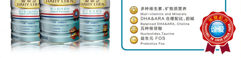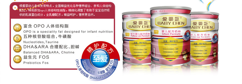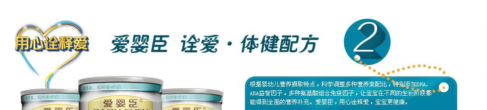 /食品法典委員會(CAC)所制定的推薦標(biāo)準(zhǔn)和中國配方奶粉食品安全國家標(biāo)準(zhǔn),根據(jù)中國寶寶生長發(fā)育特征和需求,在原有品牌基礎(chǔ)之上,隆重推出具有中國寶寶專屬品質(zhì)的愛嬰臣嬰幼兒配方奶粉“至愛?精護(hù)配方”和“詮愛?體健配方”兩大系列產(chǎn)品,并將為中國父母提供更專業(yè)的科學(xué)喂哺和育嬰服務(wù)。