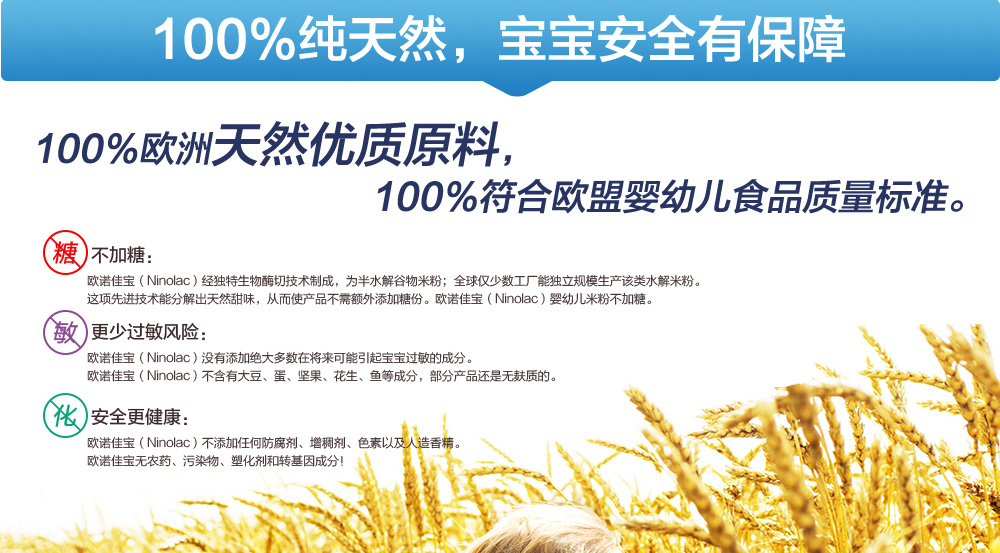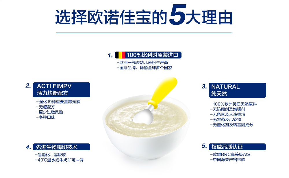 歐諾佳寶(Ninolac)富含大量優(yōu)質營養(yǎng)元素,有益寶寶免疫系統(tǒng)發(fā)育:富含鐵,能夠幫助預防貧血;鋅及其它礦物質和維生素可以保護寶寶,降低患一些常見疾病的可能性。