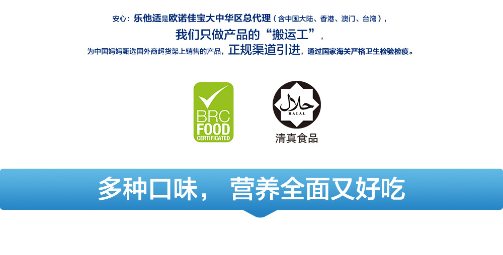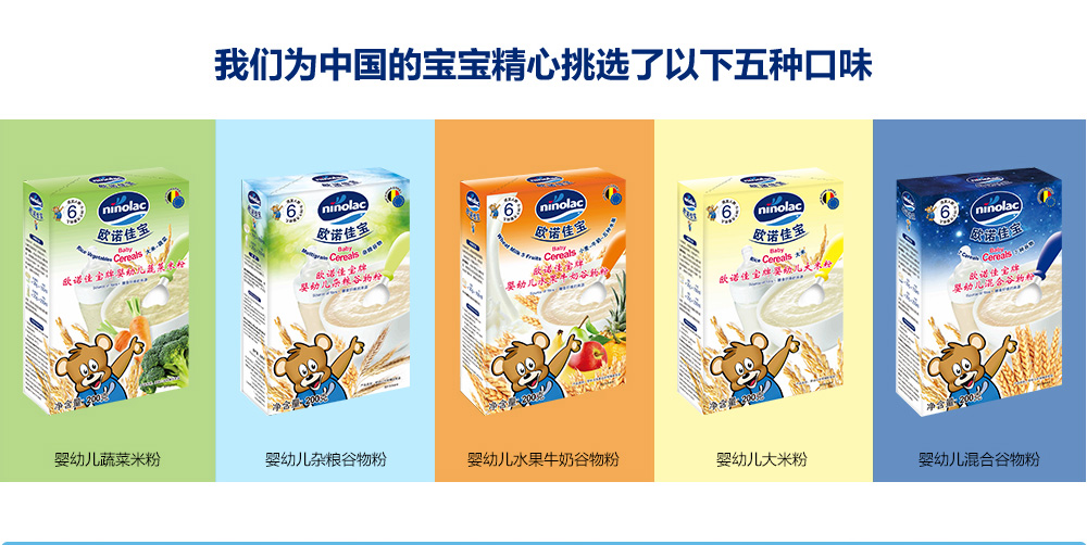歐諾佳寶(Ninolac)含有益寶寶體格發(fā)育的所有必需營養(yǎng)元素:如高生物價值的蛋白質、脂肪、膳食纖維、維生素A,D,E,C,B1,B2,B12,B6、葉酸、泛酸、生物素、煙酸、鐵、鈣、鋅等。