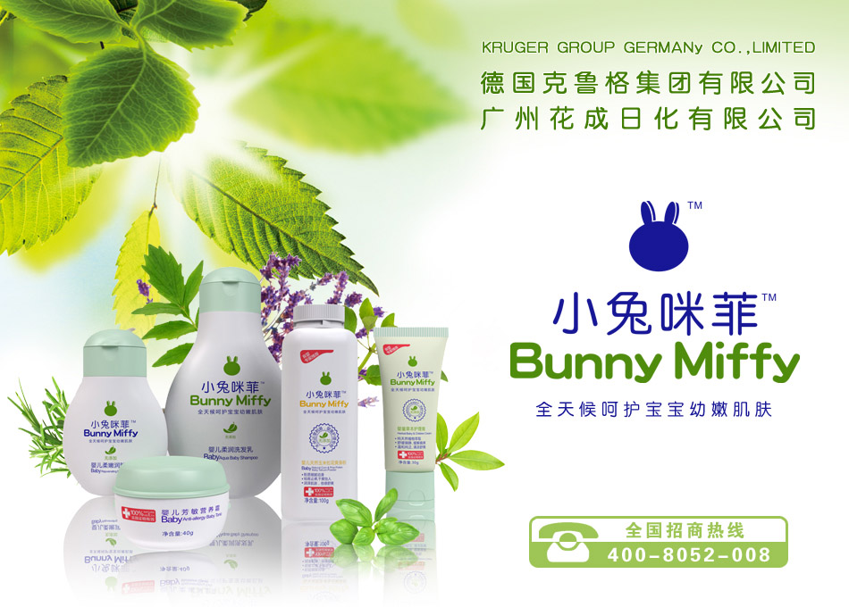 德國克魯格集團(tuán)有限公司是崇尚“安全、天然、健康”為產(chǎn)品理念的專業(yè)個(gè)人護(hù)理用品的研發(fā)生產(chǎn)企業(yè),旗下?lián)碛幸幌盗袀(gè)人護(hù)理品牌。德國克魯格集團(tuán)有限公司經(jīng)過海外市場的蓬勃發(fā)展,現(xiàn)攜公司多個(gè)知名品牌開拓中國市場,與中國廣州花成日化有限公司攜手合作,傾情打造專業(yè)嬰童護(hù)理品牌 小兔咪菲--BunnyMiffy ; 成人護(hù)理品牌 FACEMI--花成美。