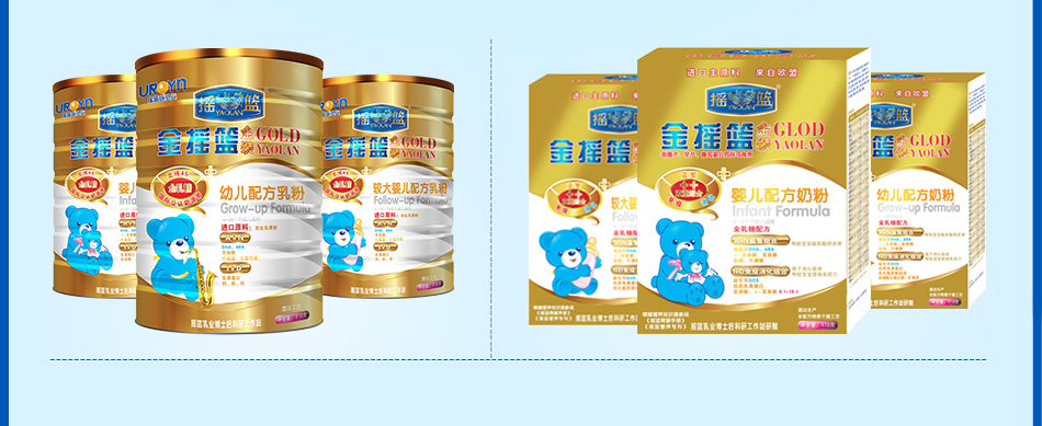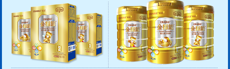 | 金搖籃金裝升級版嬰兒配方乳粉 | 金搖籃金裝升級版較大嬰幼兒配方乳粉 | 金搖籃金裝升級版幼兒配方乳粉 | ||