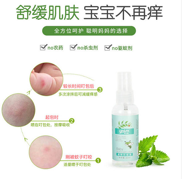 產品特點:本產品專為寶寶脆弱的呼吸道及幼嫩肌膚設計,蘊含香茅、薄荷葉、二蕊紫蘇、紅花除蟲菊花等植物提取物,能有效防止蚊蟲跳蚤叮咬,并能緩解蚊蟲叮咬的不適;植物來源,絕不添加化學農藥成分,溫和不刺激,可直接噴灑于皮膚及衣服上,有效驅趕蚊蟲對寶寶的騷擾。返回焦點嬰童網首頁 |