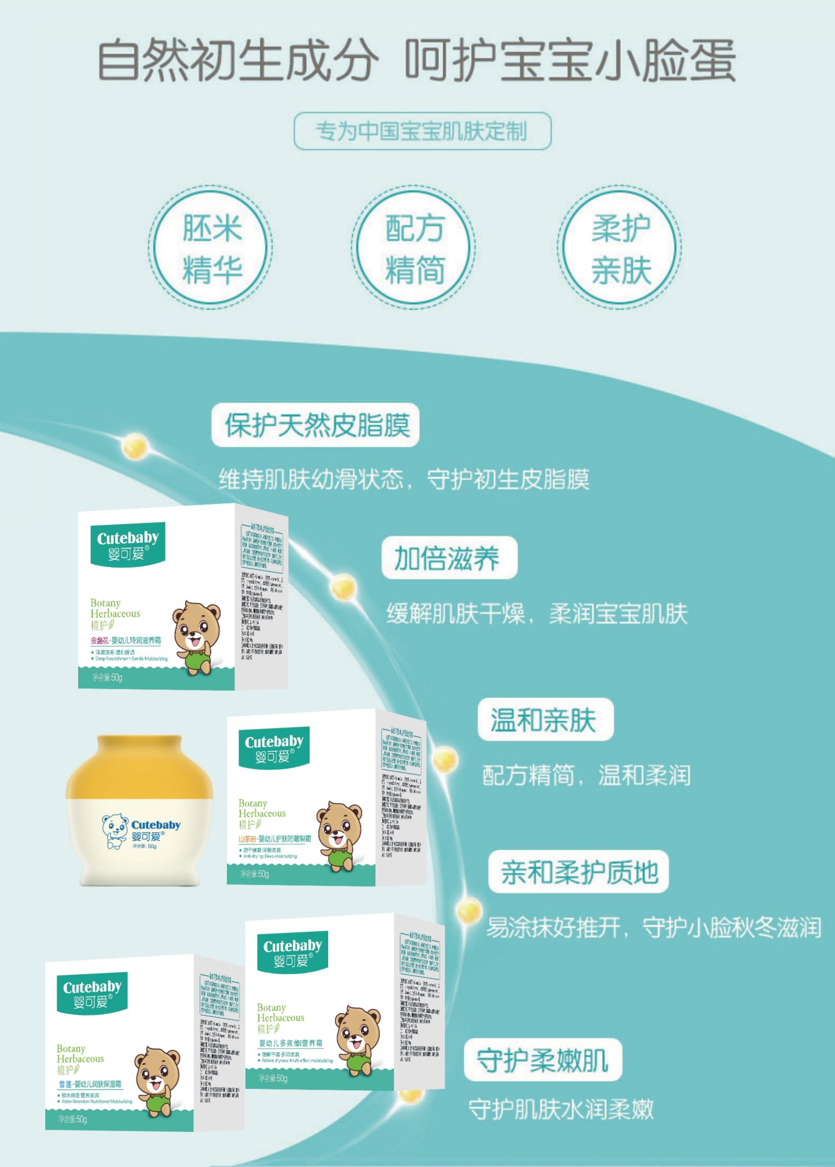嬰為有愛(ài),所以有愛(ài)。嬰可愛(ài)專注嬰兒護(hù)理,貼心呵護(hù)寶寶成長(zhǎng) 1828年,CUTEBABY由德國(guó)著名醫(yī)學(xué)家 Caroli Ann Durning創(chuàng)建,崇尚天然護(hù)膚,致力于天然植物成分研究,開(kāi)發(fā)大自然能量的系列護(hù)膚品。自CTUEBABY德國(guó)嬰可愛(ài)(中國(guó))控股有限公司成立以來(lái),專注于嬰幼兒洗護(hù)用品的研發(fā)和服務(wù),經(jīng)過(guò)多年不斷努力和發(fā)展,擁有完善的研發(fā)、生產(chǎn)、銷售及服務(wù)體系。