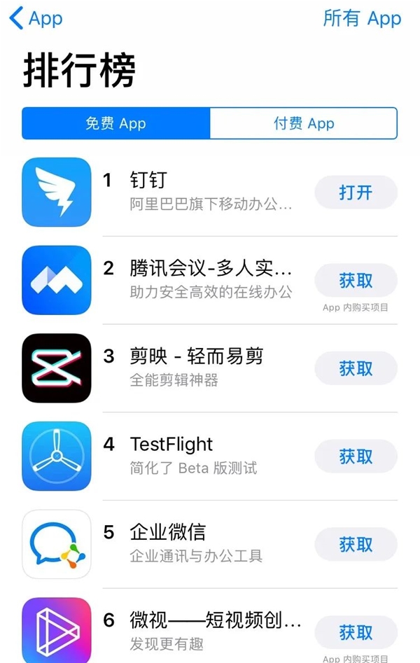 在這樣巨大的需求缺口下,也為遠程辦公產(chǎn)品提供了拉新的機會。無論是限時免費,還是緊急擴容、提升基礎(chǔ)功能,除了在面對重大社會突發(fā)事件時,承擔作為商業(yè)力量的公共責任外,事實上企業(yè)們還達到了快速搶占市場份額的目的。復(fù)工后的較長一段時間內(nèi),蘋果app商店的免費軟件下載量排行榜上,釘釘、騰訊會議、企業(yè)微信等排名持續(xù)在前。