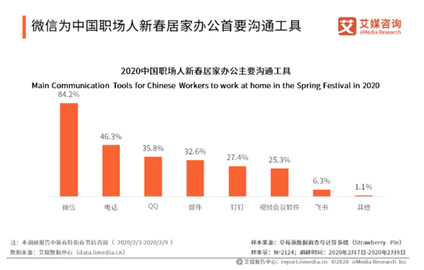 疫情過后 需求將大幅回落 總體來看,當前企業(yè)面臨著愈發(fā)嚴峻的競爭環(huán)境,人力成本持續(xù)走高;而企業(yè)追求的是效率提升和成本降低,在線辦公從一定程度上能有效緩解企業(yè)的需求。 中國遠程辦公普及率相對較低,企業(yè)協(xié)作仍為藍海市場,面臨著較大發(fā)展機會。隨著華為、騰訊等互聯(lián)網(wǎng)巨頭布局遠程辦公產(chǎn)品,遠程視訊、文檔協(xié)作等垂直細分領(lǐng)域繼續(xù)深耕,企業(yè)協(xié)作市場規(guī)模將進一步擴大,未來仍有較大發(fā)展空間。 但是,我們也需要清楚地意識到,此次在家辦公為偶發(fā)性事件,這屬于遠程辦公被動出圈,是廣大企業(yè)和員工在疫情影響下的無奈之舉,并非是市場進化的表現(xiàn)。對于大多數(shù)的行業(yè)來說,雖然可以在線上溝通、協(xié)作等,但最終很多合作和交易都得在線下完成,這是遠程辦公軟件無法去改變的事實。 相較于成熟的海外市場,國內(nèi)的遠程辦公顯得有些青澀。突如其來的疫情短期內(nèi)釋放了大量在線辦公軟件需求,產(chǎn)生了巨大的推動力,使勁推著遠程辦公行業(yè)往前狂奔。但各類在線辦公軟件存在的弊端難以快速改善,進而制約用戶粘性的提升。預(yù)計疫情防控期過后,在線辦公軟件需求將會大幅回落。 另外值得一提的是,從我們最近的調(diào)查來看,職場人新春居家辦公期間使用的溝通工具,排在前三位的分別是微信、電話、QQ,占比分別為84.2%、46.3%、35.8%。釘釘、飛書等這些辦公軟件排在其后,用戶的習慣尚未養(yǎng)成。