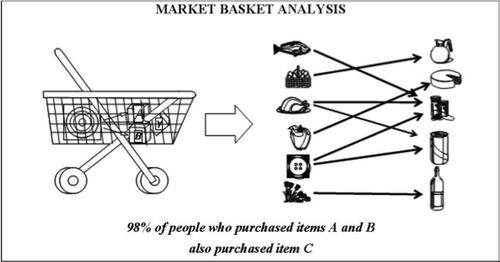 Source:Medium 推薦系統(tǒng)會根據(jù)消費者的選擇調(diào)整推薦內(nèi)容。大量的數(shù)據(jù)經(jīng)過推薦系統(tǒng)的清理和篩選后可以為商家提供寶貴的insight。我們一般所說的推薦系統(tǒng)算法,分協(xié)同過濾和基于內(nèi)容過濾這兩種。前者是基于顧客過去一系列的行為,而后者是基于一系列產(chǎn)品的特性。除此之外,還有其他各種諸如人口學、偏好、需求、歷史消費記錄等等數(shù)據(jù), 也會被學習歷史數(shù)據(jù)的算法預處理。 推薦系統(tǒng)會算出一個相似度指數(shù),用以描述消費者的偏好,并根據(jù)這個指數(shù)來優(yōu)先推薦每個消費者(預計)最喜愛的商品或者服務。根據(jù)線上用戶畫像的分析,推薦系統(tǒng)可以推薦up-sell(同類別更高檔的)產(chǎn)品或者cross-sell(不同類別的互補產(chǎn)品)給用戶。 購物籃分析Market basket analysis 購物籃分析是一種在零售業(yè)經(jīng)久不衰又十分有效的傳統(tǒng)分析方法。這種分析方法著眼于消費者購物籃里的商品組成并結合購買記錄從而找出商品間的關聯(lián),外加線上收集的消費者對于產(chǎn)品的偏好,商家可以預測顧客接下來可能購買什么產(chǎn)品并因此調(diào)整自己的貨架展示以及定價策略。