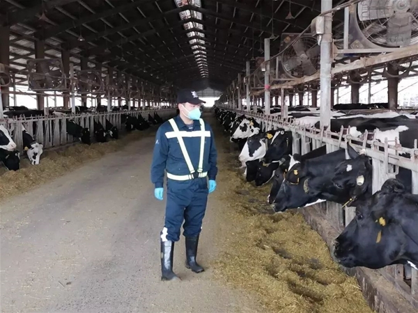 每日,他與繁殖團隊的同事們要對全場2900多頭成乳牛和后備牛進行5次巡查,實時關注牛只情況,產(chǎn)后牛只分泌物是否正常,牛床墊料是否充足舒適等問題,再對場內(nèi)設備設施運行情況及時反饋。