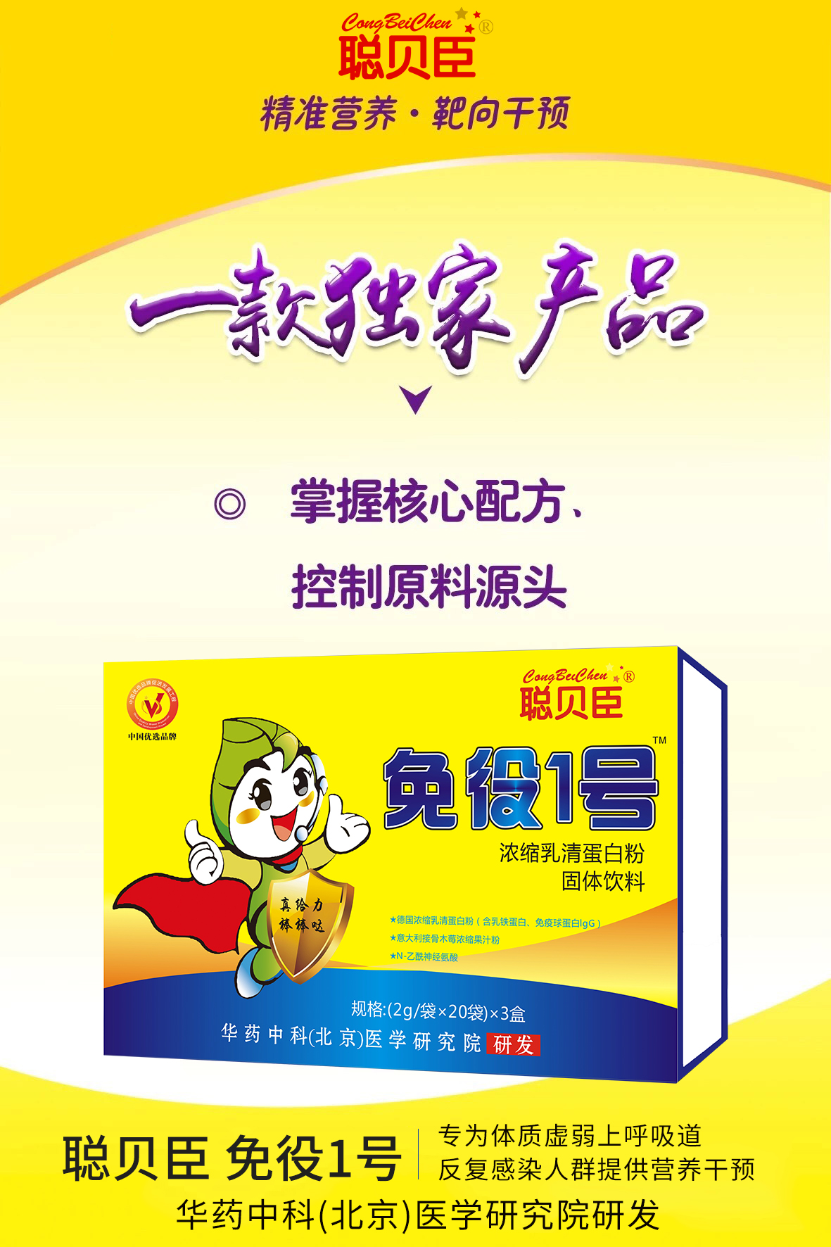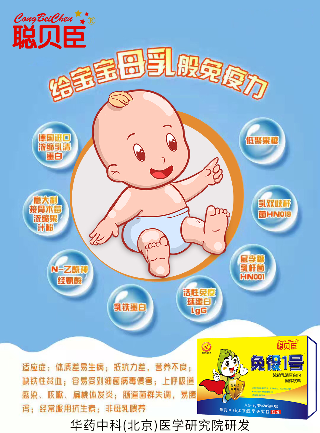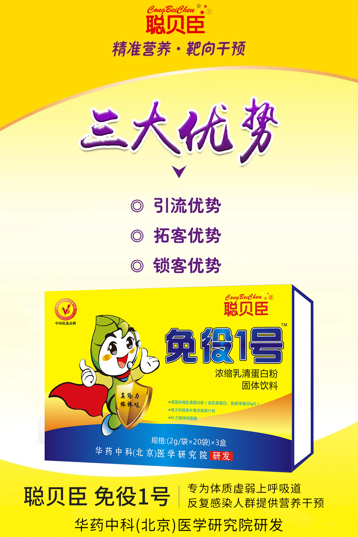 聰貝臣️免疫1號爆品全線上市,由華藥中科北京醫(yī)學研究院研發(fā),配方正宗,主要針對體質(zhì)虛弱,上呼吸道感染,嬰幼兒咳嗽,發(fā)燒,感冒腹瀉這塊,美國樂力醫(yī)藥科技集團強大的后臺支持,全國招商,機會不容錯過! |