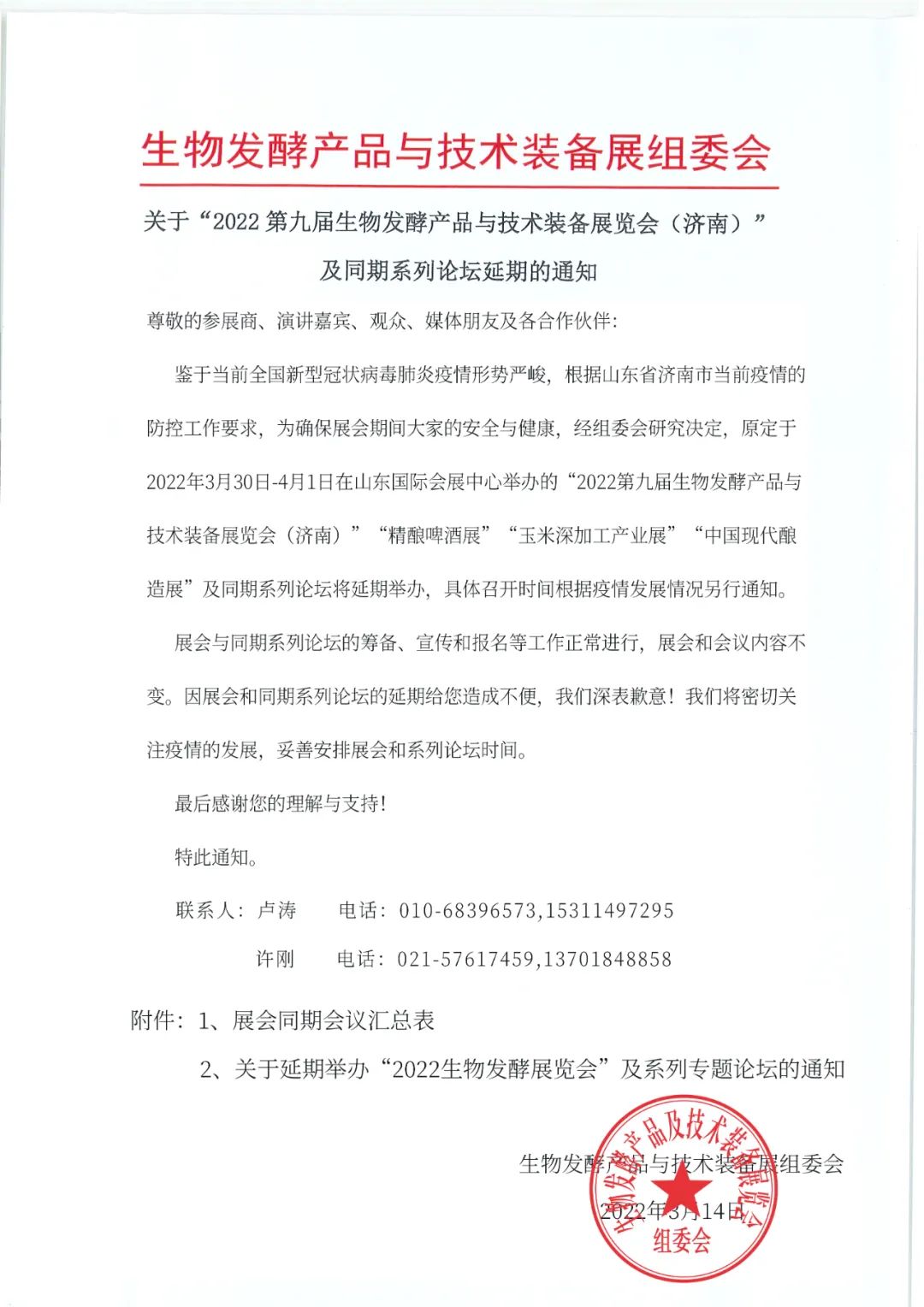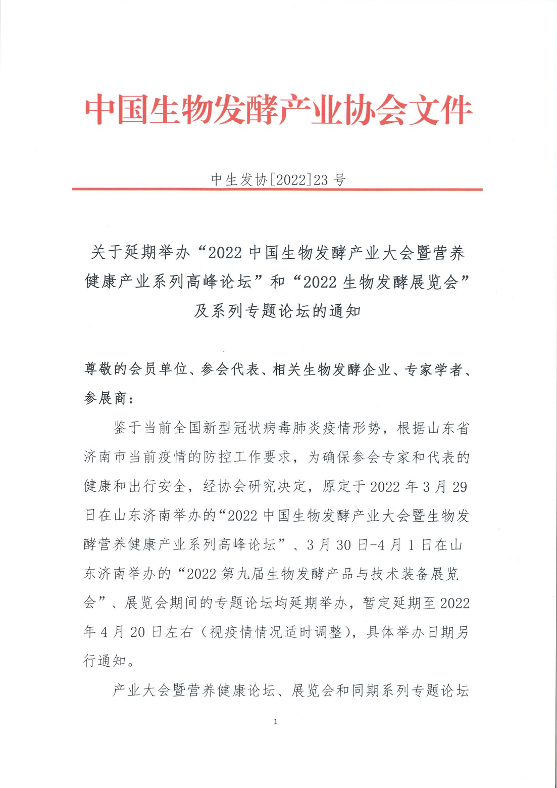 關于“2022第九屆生物發(fā)酵產品與技術裝備展覽會(濟南)”及同期系列論壇延期的通知