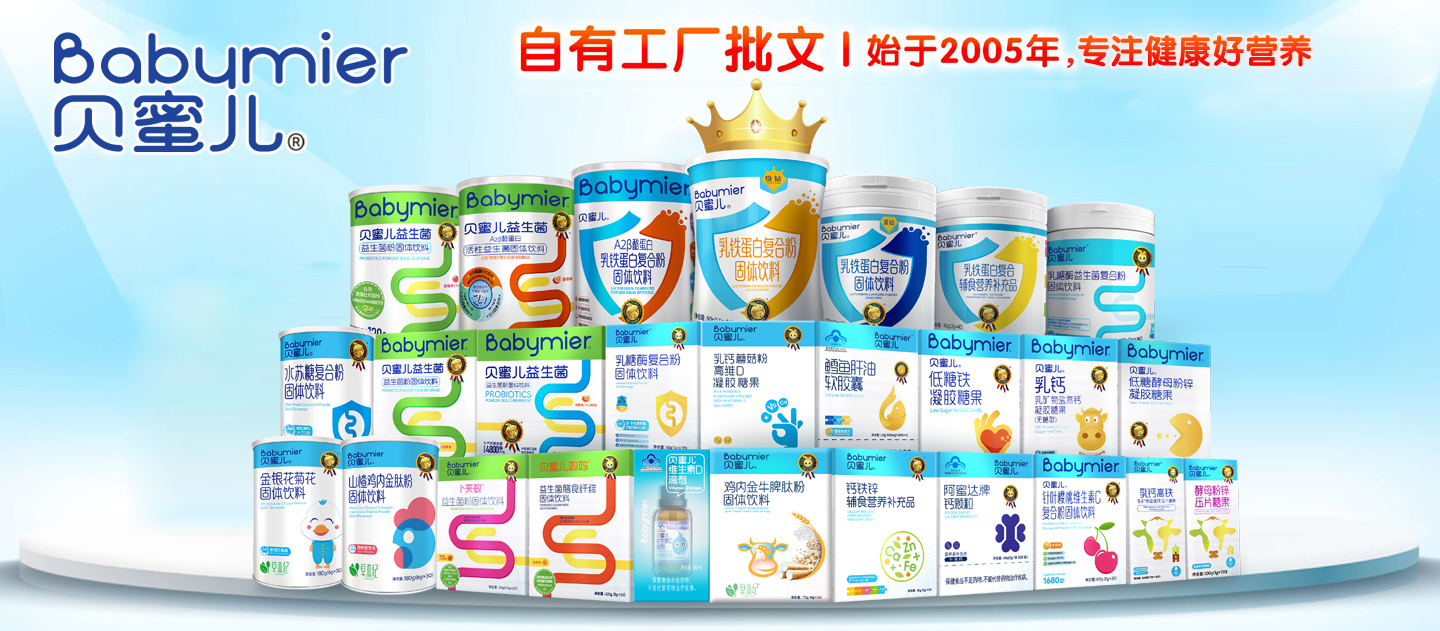 深圳貝蜜兒健康集團(tuán)有限公司為貝蜜兒集團(tuán)旗下企業(yè),成立于2005年,總部坐落于中國(guó)深圳。公司16年來(lái),專注健康好營(yíng)養(yǎng)!踐行“媽媽好,寶寶更好!”的品牌理念,守護(hù)母嬰健康。產(chǎn)品涵蓋嬰幼兒輔食營(yíng)養(yǎng)補(bǔ)充品、嬰幼兒鈣鐵鋅補(bǔ)充劑、乳清乳鐵蛋白粉、孕婦乳母及兒童專用維生素與礦物質(zhì)補(bǔ)充劑、益生菌、DHA、牛初乳等。三十余個(gè)產(chǎn)品獲得國(guó)家批準(zhǔn)的保健食品生產(chǎn)批文,保健食品及嬰幼兒營(yíng)養(yǎng)補(bǔ)充品全部在自建GMP十萬(wàn)級(jí)標(biāo)準(zhǔn)凈化工廠生產(chǎn)。