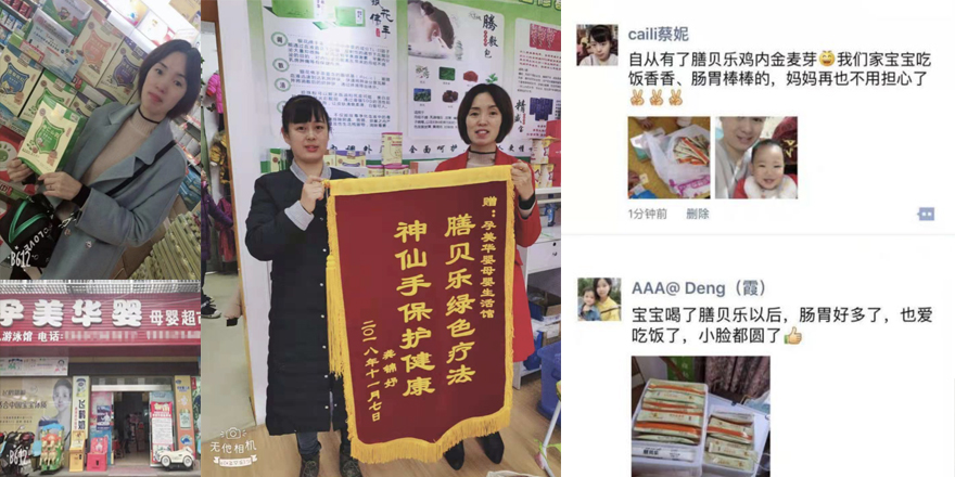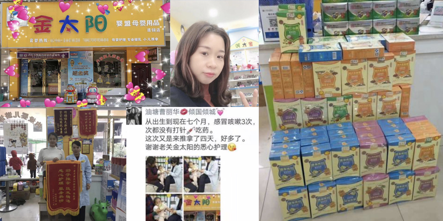 常德-石門孕美華嬰母嬰店——2016年初進(jìn)軍母嬰行業(yè),先后在兩個(gè)鄉(xiāng)鎮(zhèn)各開一家店,第一年生意好做,小有盈利,到第二年鎮(zhèn)上陸續(xù)出現(xiàn)幾家連鎖,競爭突然增大。2017年4月與膳貝樂合作之后,7月赴長沙學(xué)習(xí)小兒推拿、產(chǎn)后康復(fù)項(xiàng)目,F(xiàn)單獨(dú)開了一家小兒推拿與產(chǎn)后修復(fù)為一體的門店,目前有很多附近鄉(xiāng)鎮(zhèn)的寶媽慕名而來,就膳貝樂藥食同源產(chǎn)品的年銷量高達(dá)10萬多。