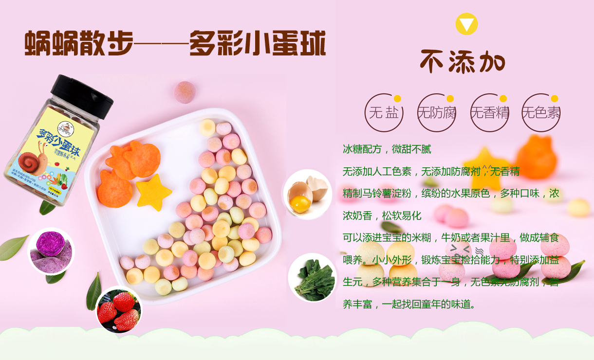 從寶寶的呱呱墜地開始媽媽需要為寶寶準(zhǔn)備的有很多為一個(gè)孩子的長大成人傾注了所有的心血從寶寶需要補(bǔ)充每一個(gè)微量元素開始寶寶的每一次成長,離不開媽媽的支持寶寶吃的每一款零輔食都非常重要蝸蝸散步蝸牛媽媽無不良添加兒童輔食為每一個(gè)寶寶的健康成長全力以赴。