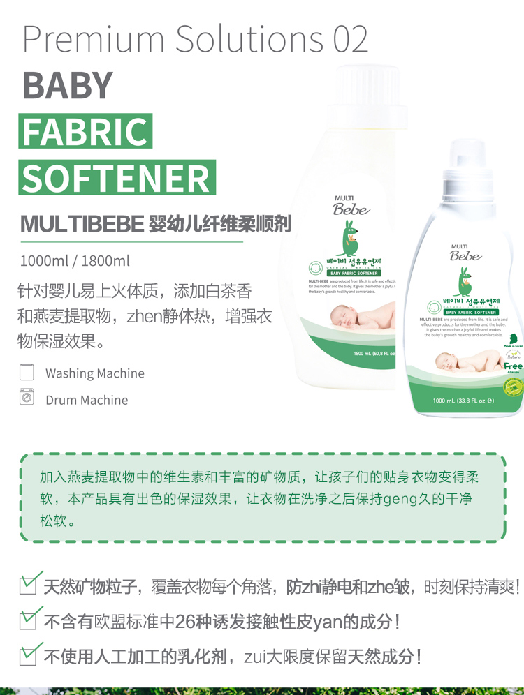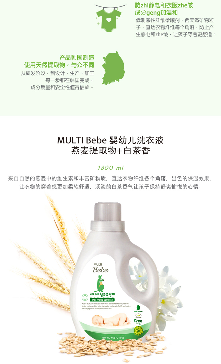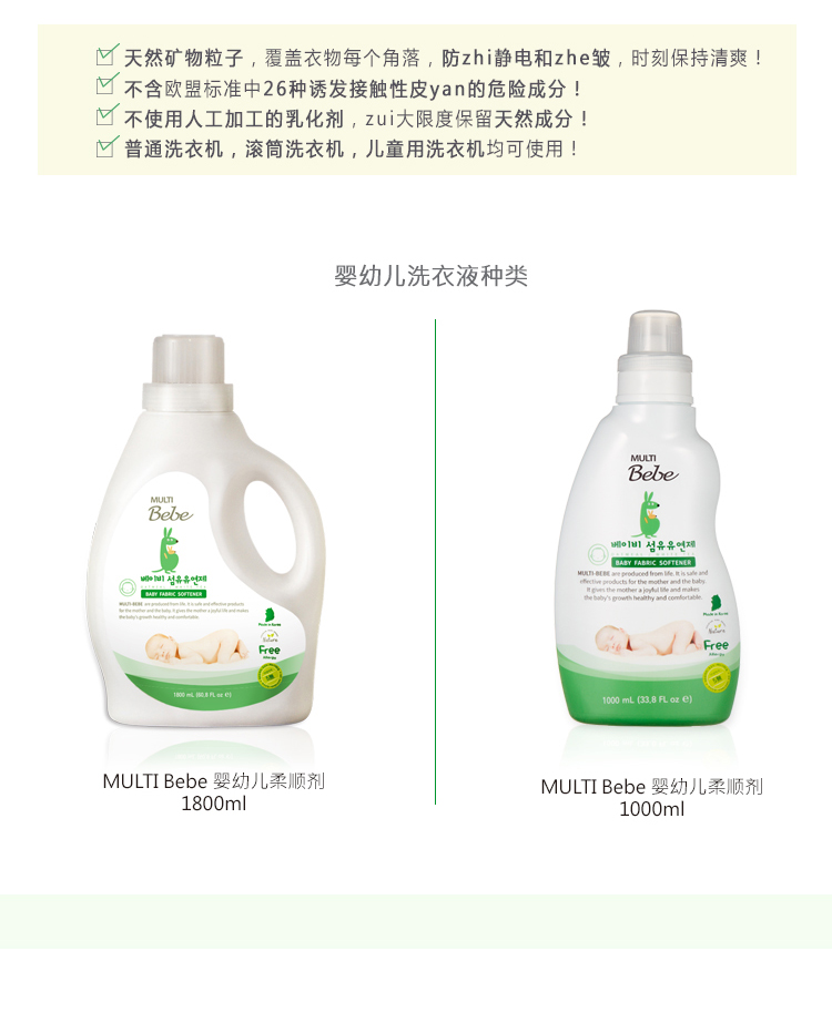 MULTIBebe莫托波比韓國(guó)原裝進(jìn)口嬰幼兒衣物柔順劑1800ml